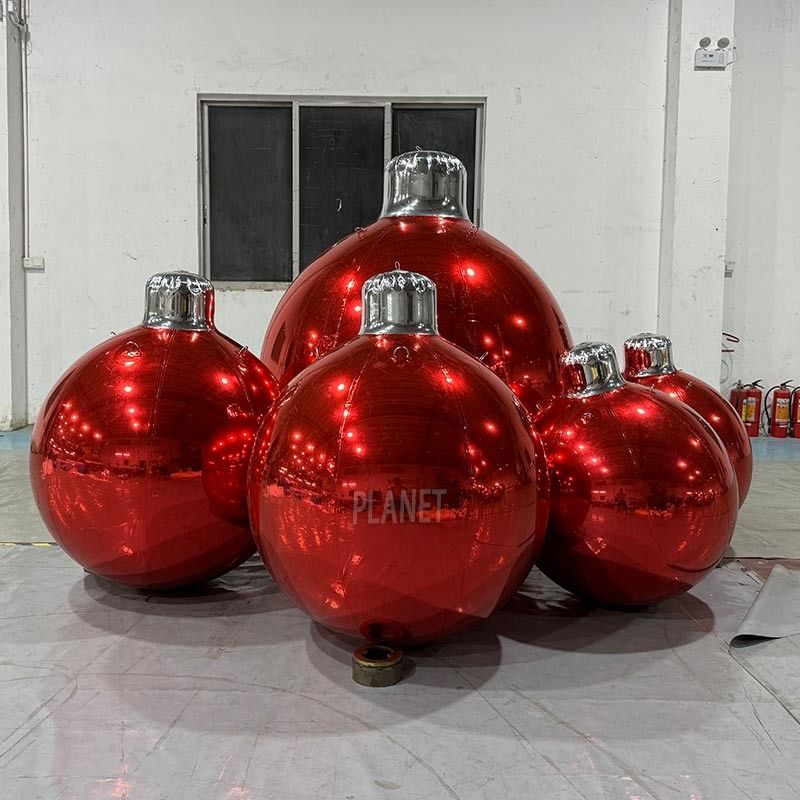 Les ornements gonflables de balles de Noël sont des décorations festives et accrocheuses conçues pour améliorer les affichages de vacances. La boule miroir de Noël gonflable est faite de matériaux légers et durables, en PVC à double couche.